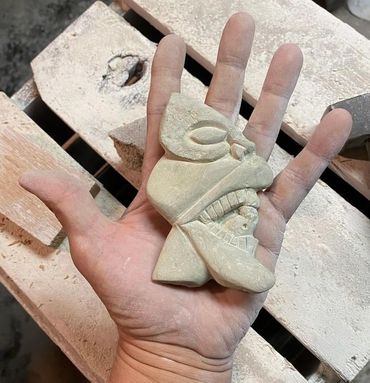 Limestone. This piece was sculpted for a young man who is currently battling cancer. All proceeds will go to him.